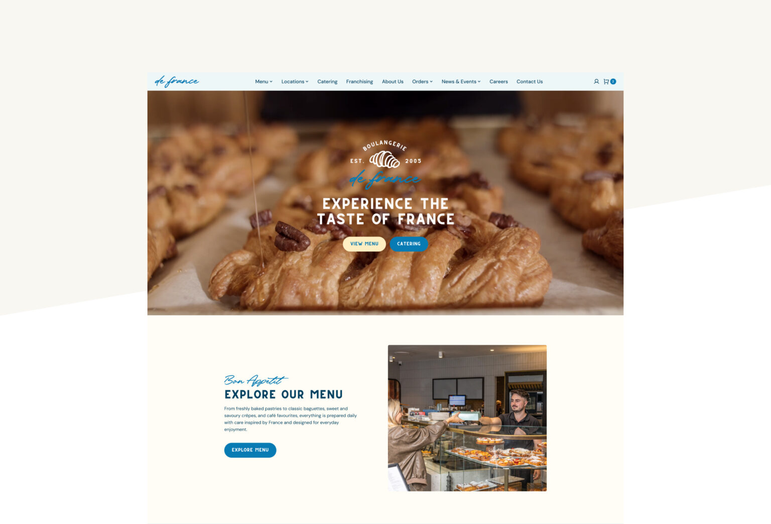 Most importantly, the new website gives DeFrance a polished online presence that showcases its bakery heritage, strengthens its marketing foundations and supports the brand as it continues to expand its café and franchise network.
