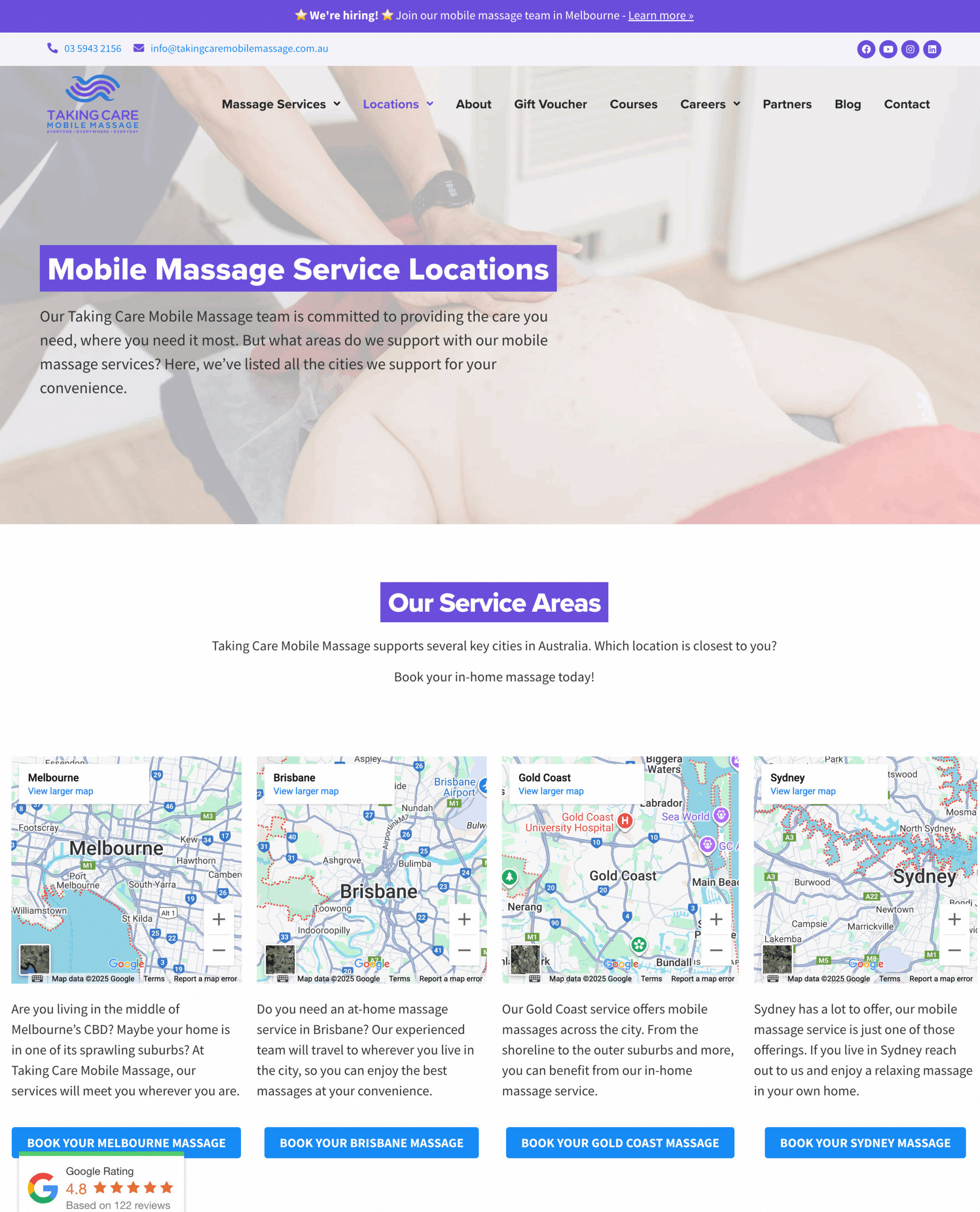 Taking Care Mobile Massage does a brilliant job of a service area page.